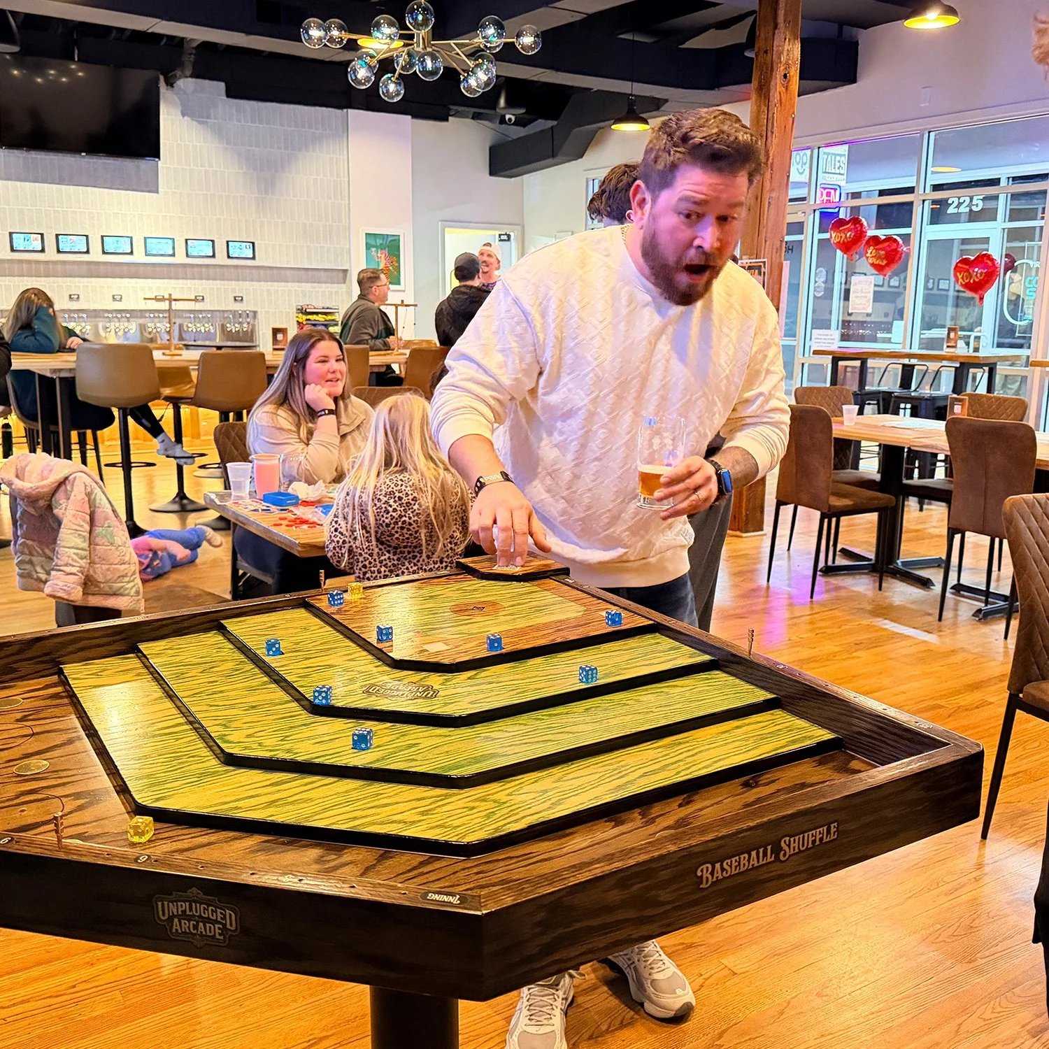 Baseball Shuffle delivers maximum fun per square foot with fast payback and affordable entry. It’s likely to pay for itself in as little as 2 months. Venues can rent removable dice trays for direct revenue (suggested $10/hour), while our research shows a significant indirect lift of sales, dwell time, intent to return, and shareable moments.