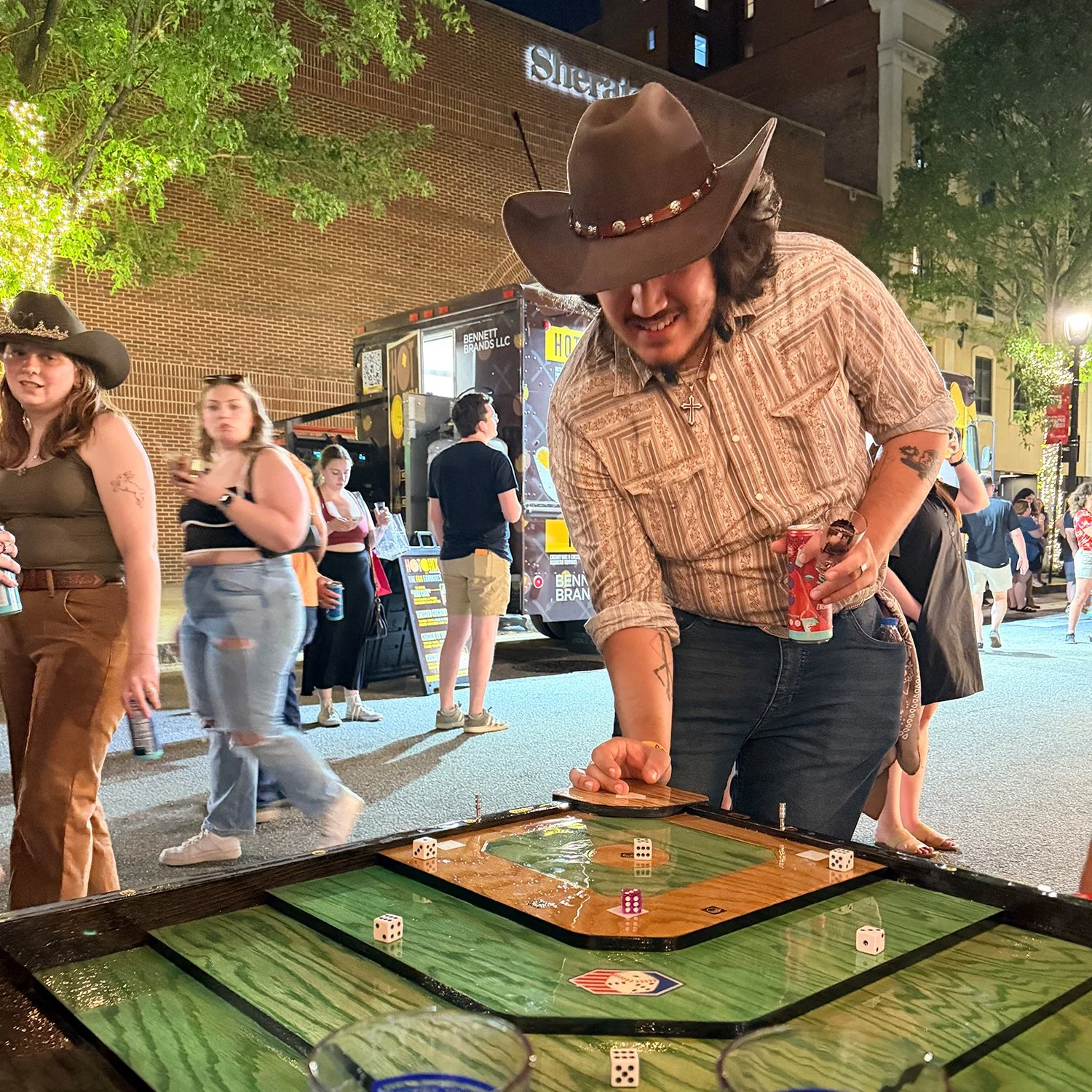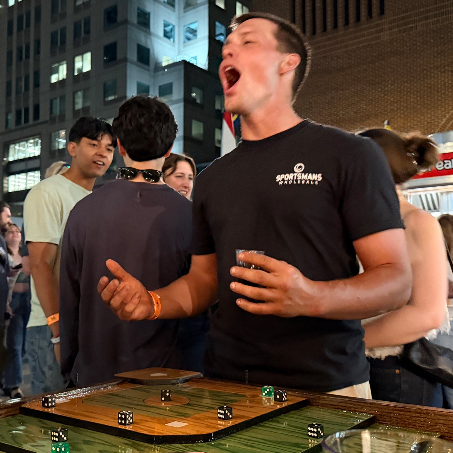 Batter up! Step up to the plate in an all-ages, dice-flicking mashup of baseball and shuffleboard on a handcrafted ballpark. The best moments of baseball are crammed into a 20 minute party games for 2-16 players, where every swing delivers wild twists, big plays, and the thrill of baseball like you’ve never seen before. And the best part? Your drinks interact with the gameplay.